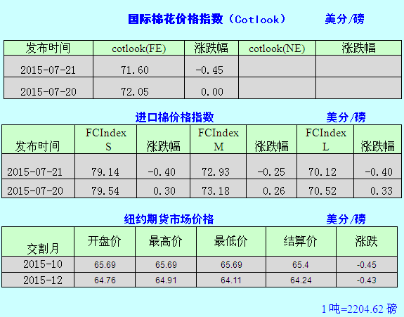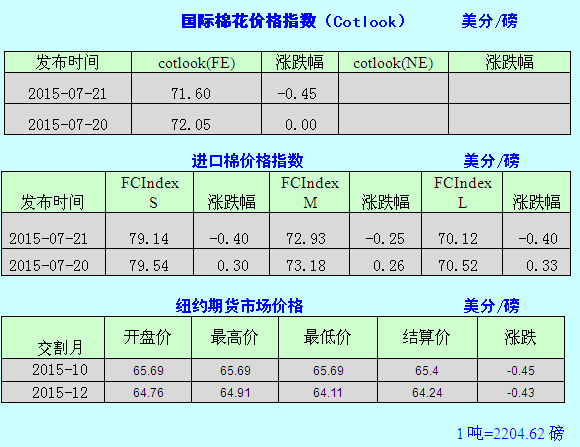 7月21日棉花市场综合信息